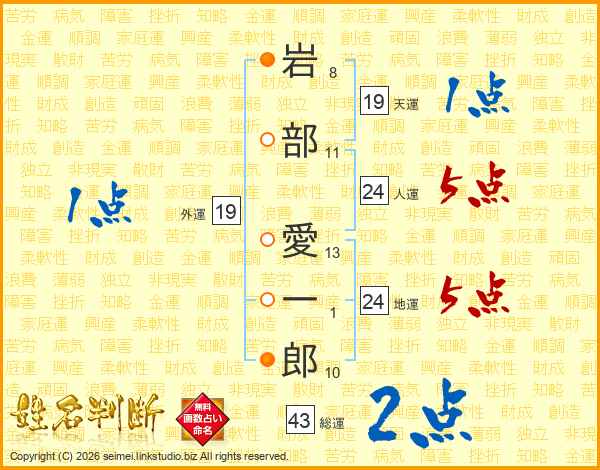 岩部愛一郎さんの人運は24画の5点!