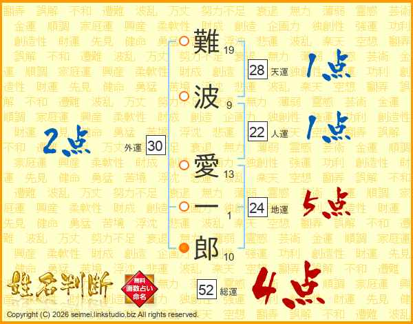 難波愛一郎さんの総運は52画の4点!