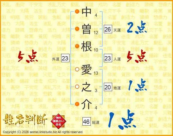 中(4画)曽(12画)根(10画) 愛(13画)之(3画)介(4画)
