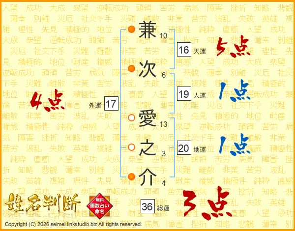 兼(10画)次(6画) 愛(13画)之(3画)介(4画)