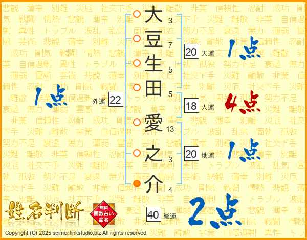 大(3画)豆(7画)生(5画)田(5画) 愛(13画)之(3画)介(4画)