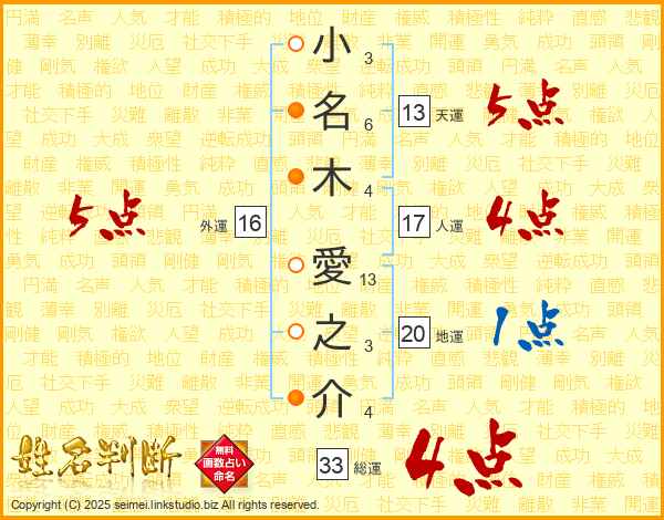 小(3画)名(6画)木(4画) 愛(13画)之(3画)介(4画)