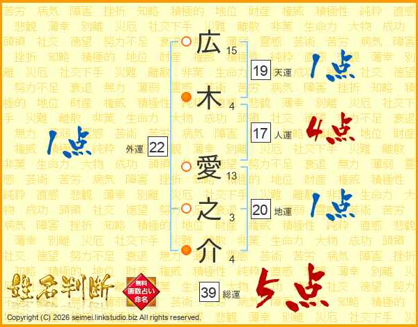 広木愛之介さんの総運は39画の5点!