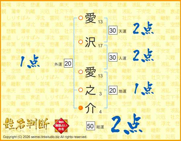愛(13画)沢(17画) 愛(13画)之(3画)介(4画)