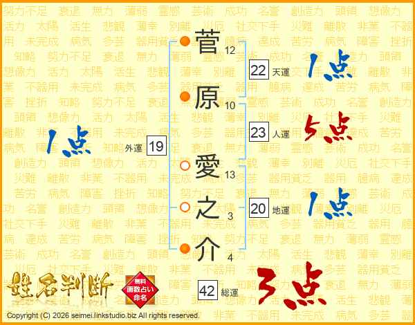 菅原愛之介さんの総運は42画の3点!