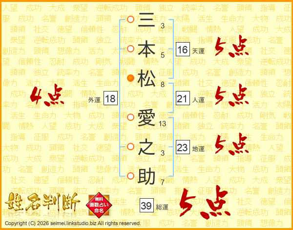 三(3画)本(5画)松(8画) 愛(13画)之(3画)助(7画)