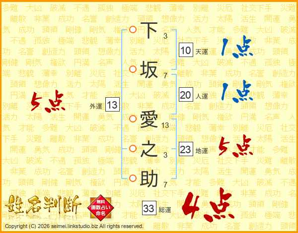下(3画)坂(7画) 愛(13画)之(3画)助(7画)
