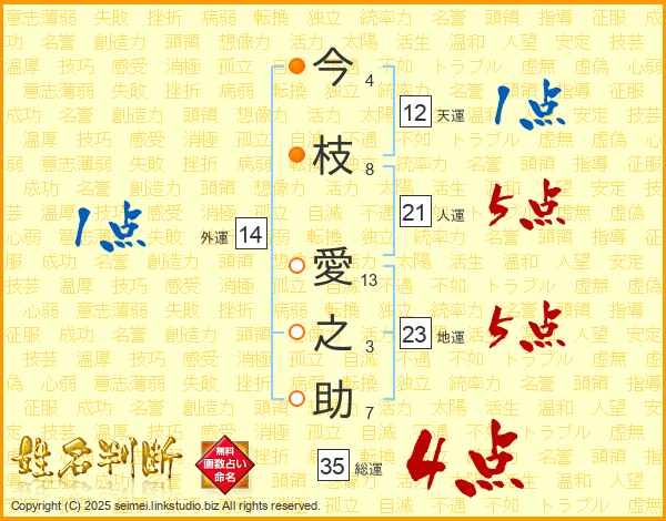 今(4画)枝(8画) 愛(13画)之(3画)助(7画)