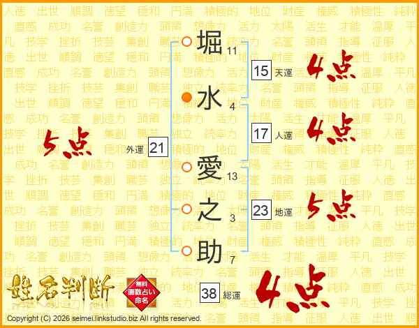堀水愛之助さんの総運は38画の4点!
