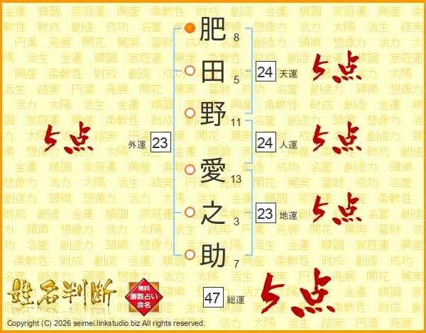 肥田野愛之助さんの総運は47画の5点!