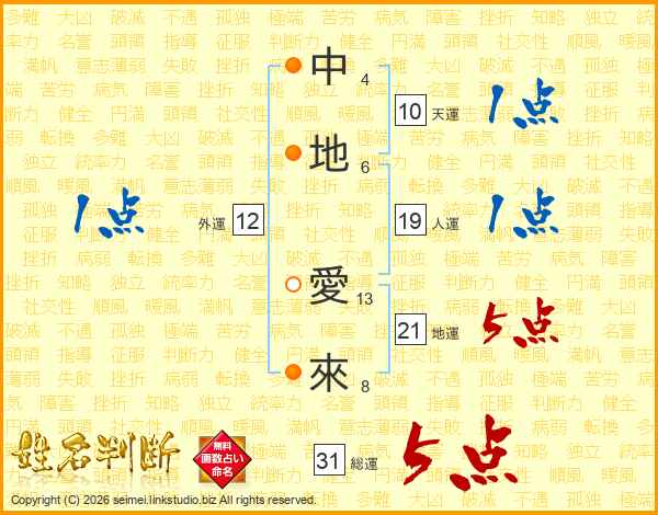 中地愛來さんの総運は31画の5点!