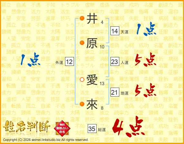 井原愛來さんの総運は35画の4点!