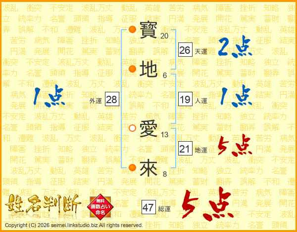 寳地愛來さんの総運は47画の5点!