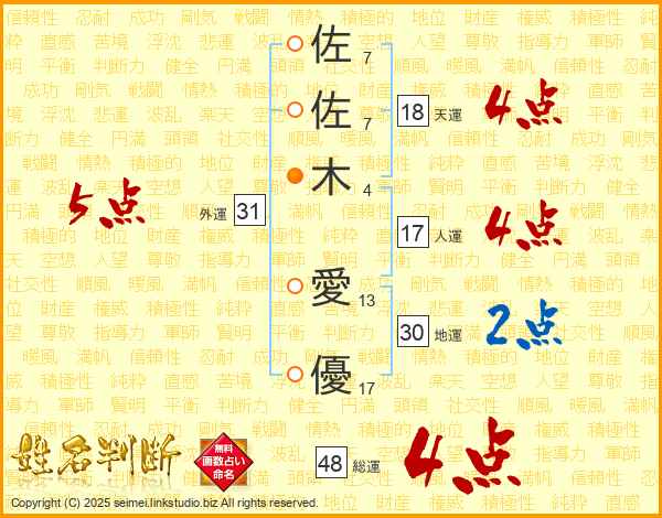 佐(7画)佐(7画)木(4画) 愛(13画)優(17画)