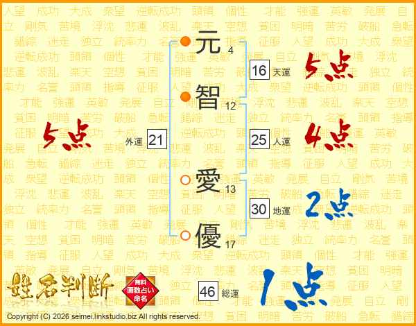 元智愛優さんの総運は46画の1点!