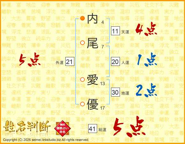 内尾愛優さんの天運は11画の4点!