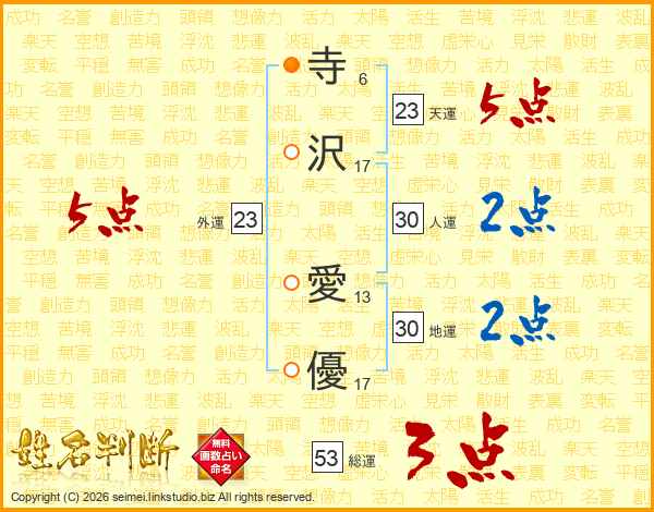 寺沢愛優さんの天運は23画の5点!