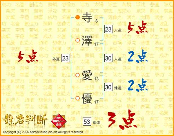 寺澤愛優さんの外運は23画の5点!