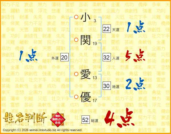 小関愛優さんの総運は52画の4点!
