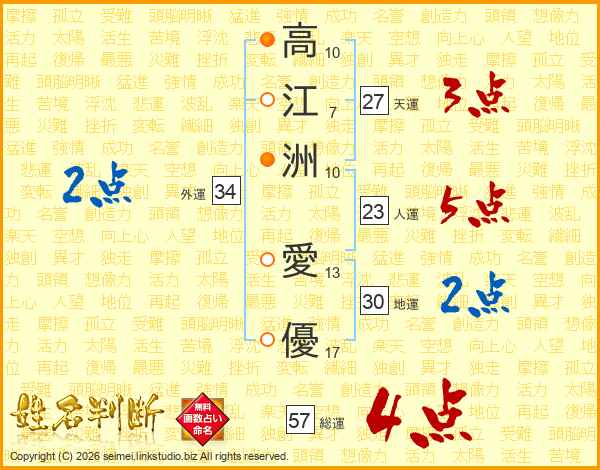 高江洲愛優さんの総運は57画の4点!