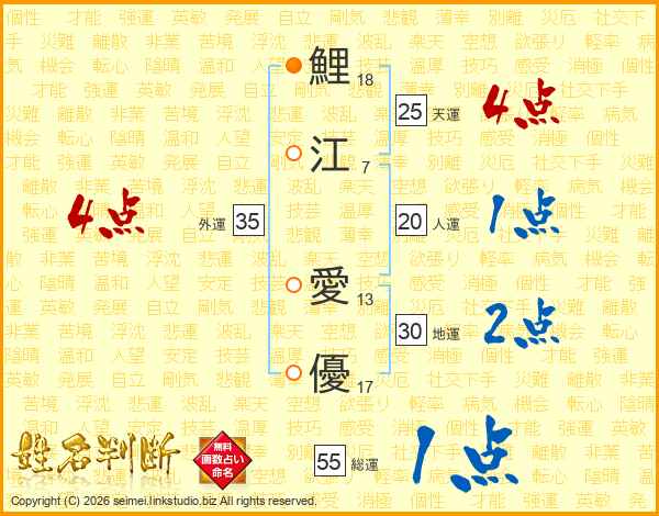 鯉江愛優さんの天運は25画の4点!