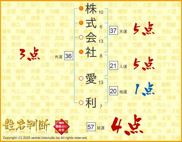 株式会社愛利さんの天運は37画の5点!