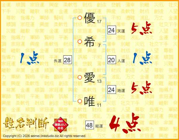 優希愛唯さんの総運は48画の4点!
