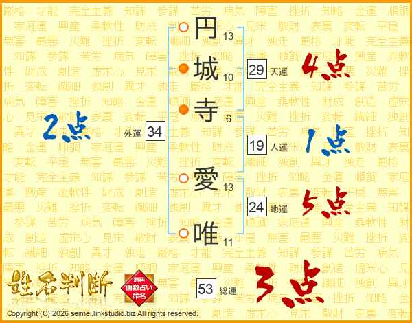 円(13画)城(10画)寺(6画) 愛(13画)唯(11画)