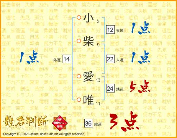 小柴愛唯さんの総運は36画の3点!