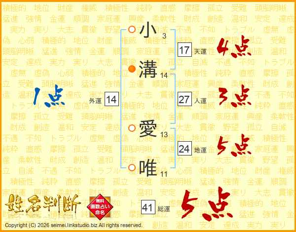 小溝愛唯さんの総運は41画の5点!