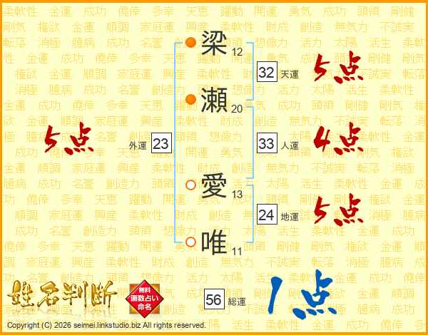 梁瀬愛唯さんの総運は56画の1点!