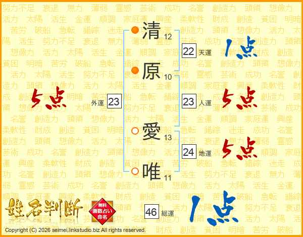 清原愛唯さんの外運は23画の5点!