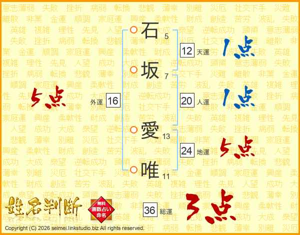 石坂愛唯さんの外運は16画の5点!