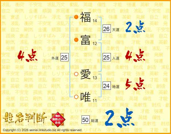 福富愛唯さんの人運は25画の4点!