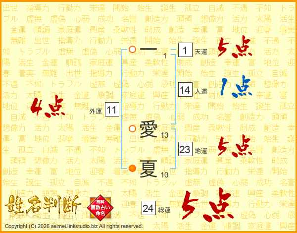 一愛夏さんの総運は24画の5点!