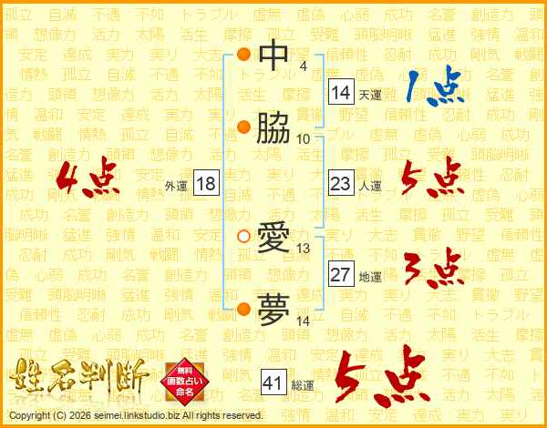 中脇愛夢さんの総運は41画の5点!