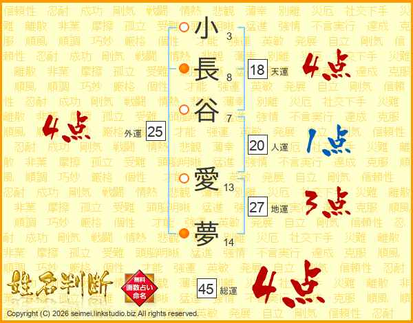 小長谷愛夢さんの総運は45画の4点!