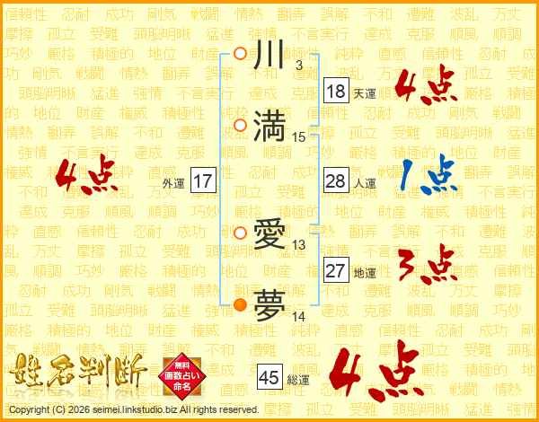 川満愛夢さんの総運は45画の4点!