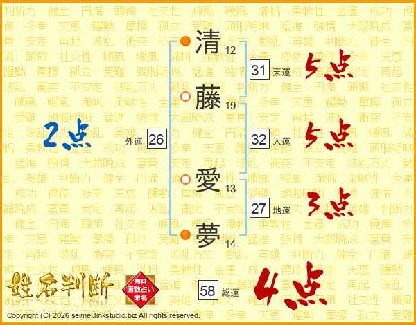 清藤愛夢さんの総運は58画の4点!