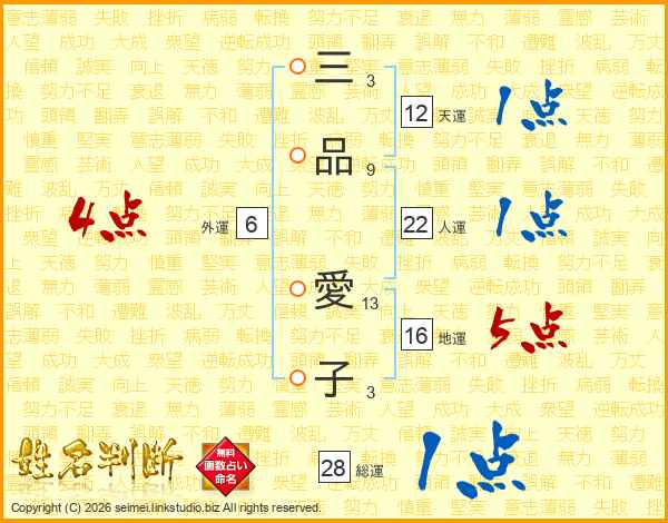 三品愛子さんの総運は28画の1点!