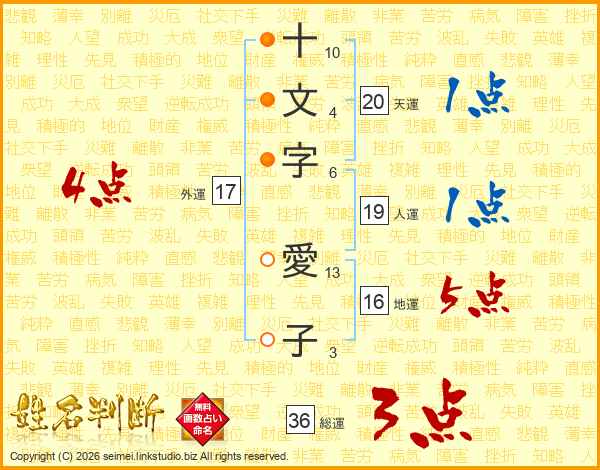 十(10画)文(4画)字(6画) 愛(13画)子(3画)