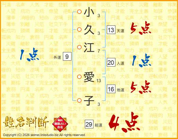 小久江愛子さんの総運は29画の4点!