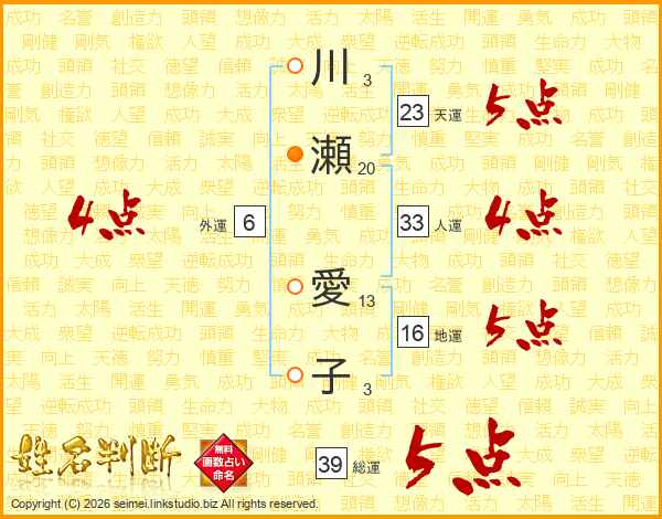 川瀬愛子さんの総運は39画の5点!