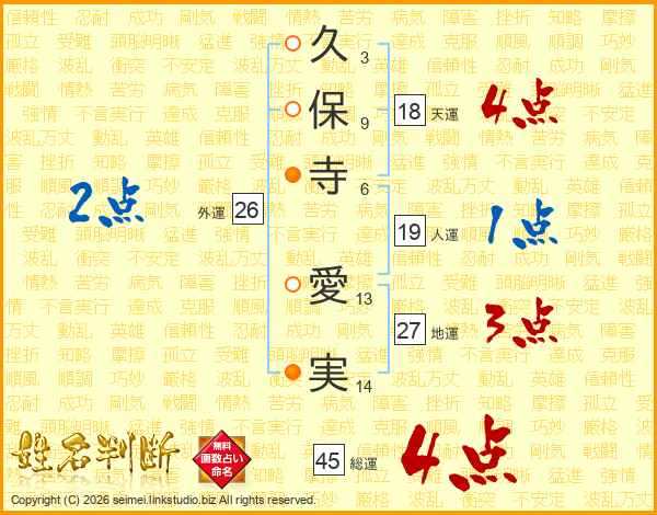 久保寺愛実さんの天運は18画の4点!