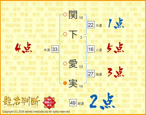関下愛実さんの総運は49画の2点!