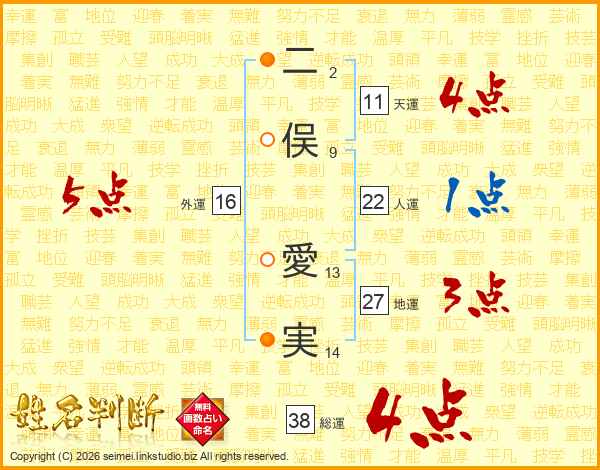 二俣愛実さんの総運は38画の4点!