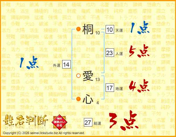 桐愛心さんの総運は27画の3点!