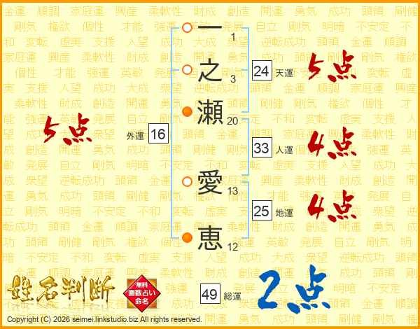 一之瀬愛恵さんの人運は33画の4点!