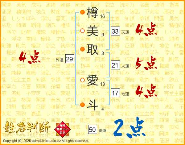 樽美取愛斗さんの天運は33画の4点!