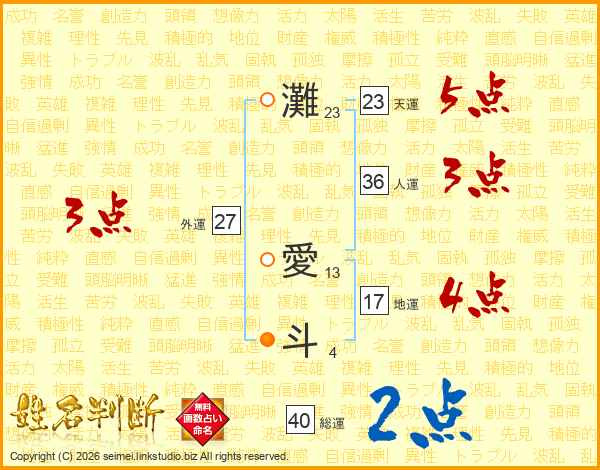 灘愛斗さんの地運は17画の4点!